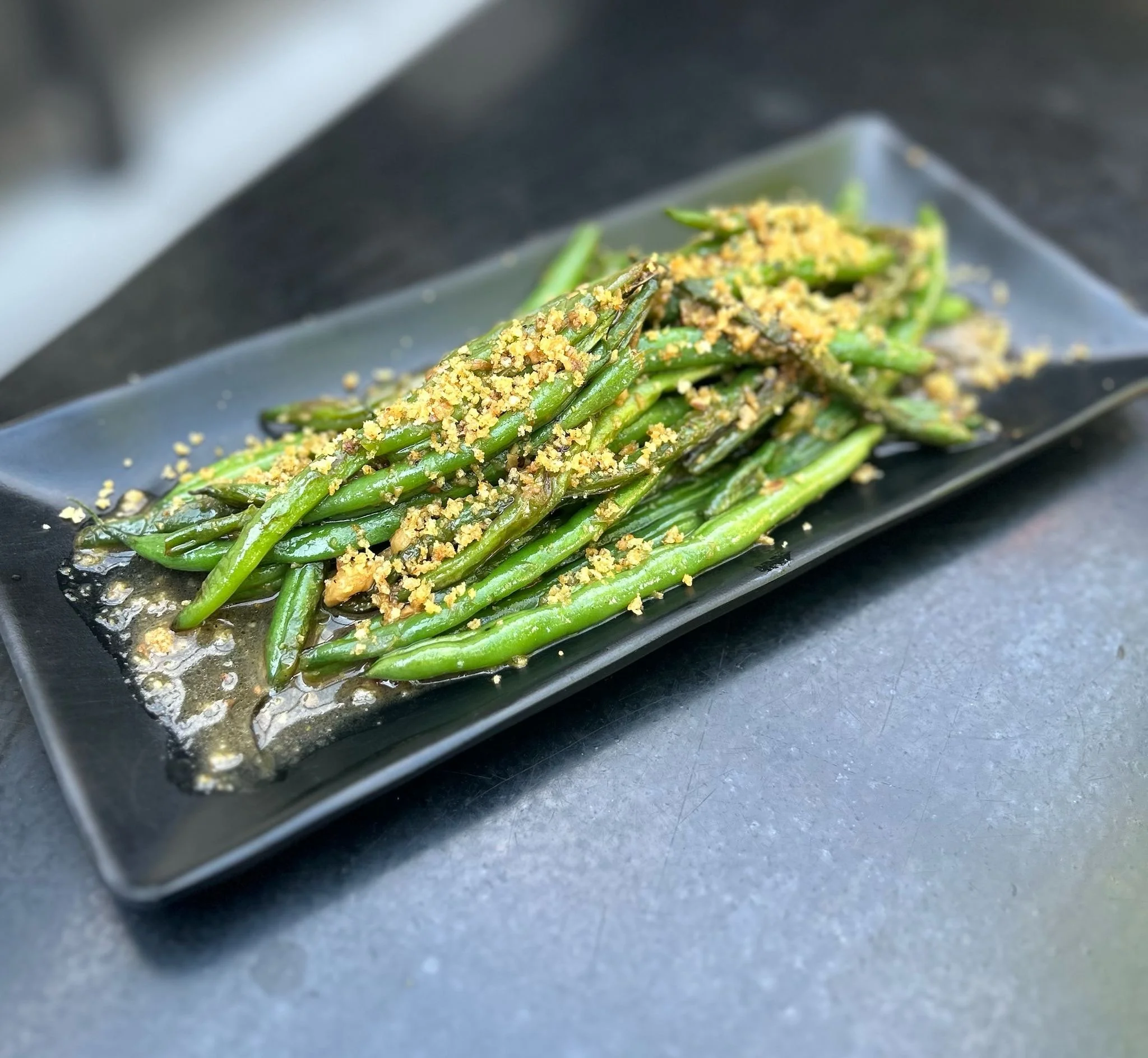 tossed in a white wine butter sauce and topped with a French’s Crispy Onion gremolata.